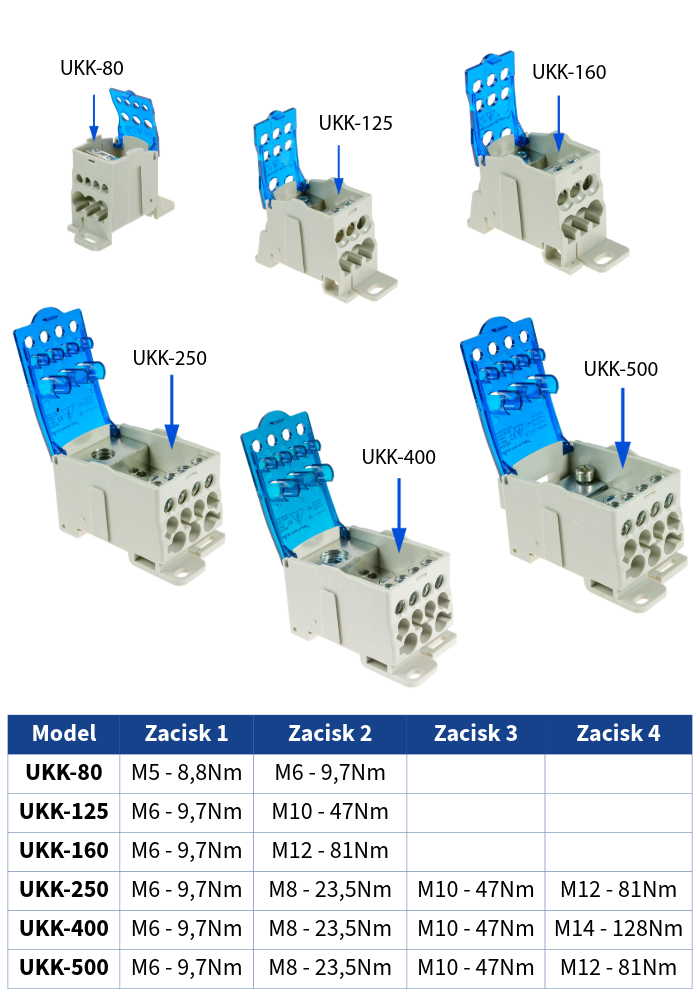 Wyposażony w złącza: 1x120 mm², 2x35 mm², 5x16 mm² oraz 4x10 mm², pozwala na elastyczną konfigurację połączeń w rozdzielnicach i szafach sterowniczych. Blok UKK-250 przystosowany jest do montażu na szynie DIN TH35 lub na powierzchniach płaskich, co ułatwia instalację w różnych warunkach.