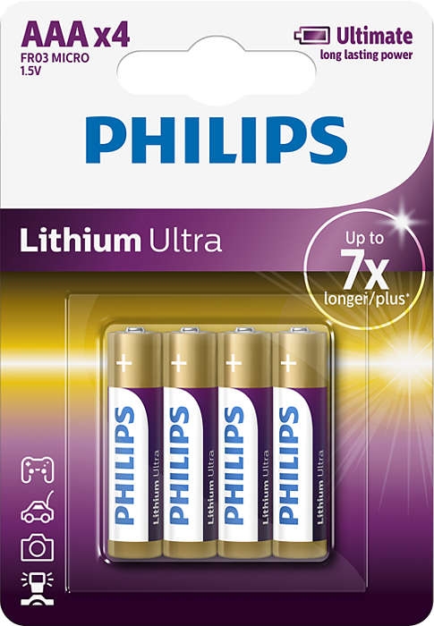 Baterie litowe Philips Ultra to doskonałe rozwiązanie w przypadku urządzeń przenośnych, które zużywają dużo energii. Działają 7 razy dłużej niż baterie alkaliczne, zapewniając więcej godzin zabawy. To po prostu baterie o najwyższej wydajności, na które czekałeś.