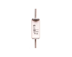 - Prąd znamionowy: 50A (maksymalny prąd, który wkładka topikowa może przewodzić bez przepalenia; przy przekroczeniu tej wartości wkładka zadziała i przerwie obwód).