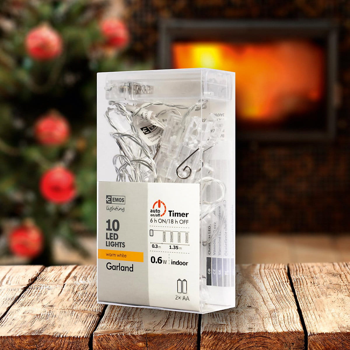 Klamerki 10 LED 1,35m 2× AA WW, timer