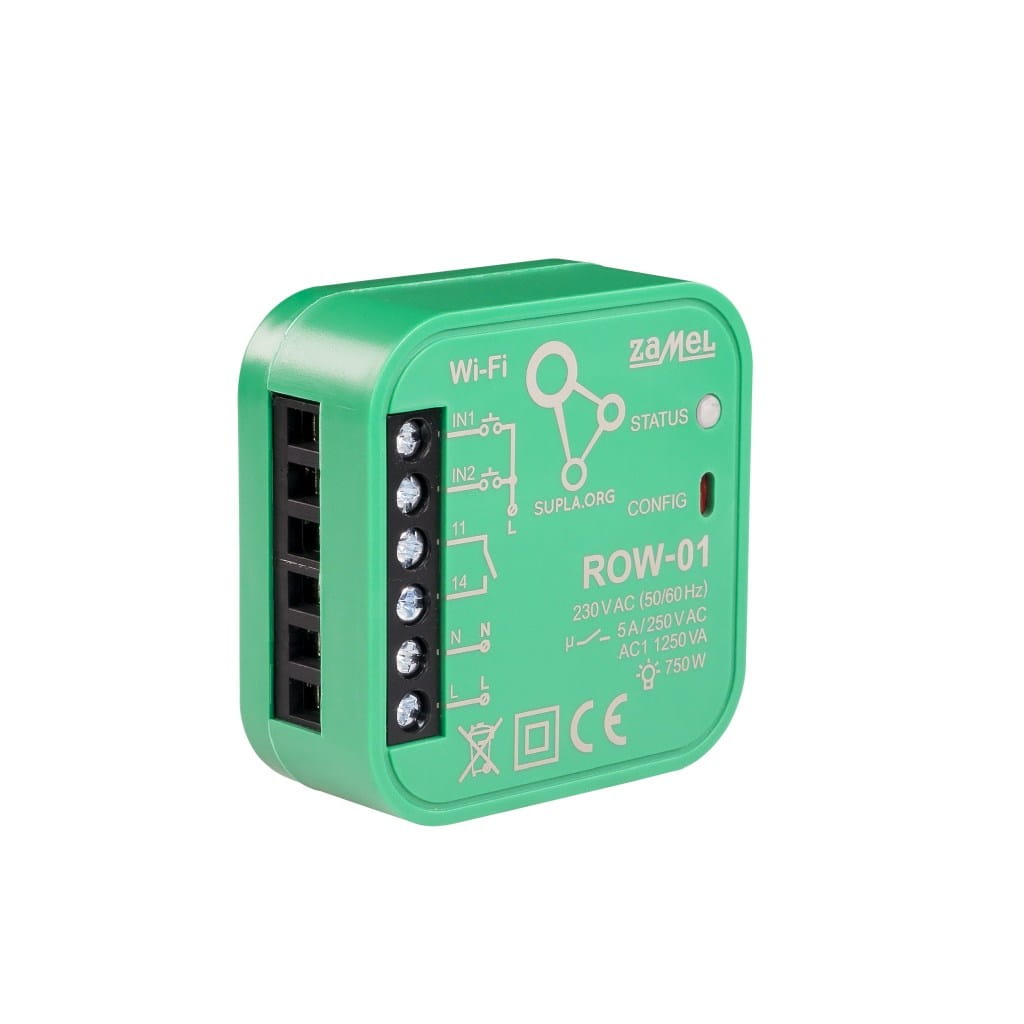 ROW-01 należy do rodziny produktów sterowania inteligentnym domem poprzez wi-fi. Urządzenie korzysta z technologii chmurowej SUPLA. Moduł ROW-01 umożliwia sterowanie oświetleniem, włączanie i wyłączanie gniazdek oraz urządzeń elektrycznych za pomocą smartfona lub tabletu. Moduły dopuszkowe ROW-01 znajdują zastosowanie zarówno jako elementy do montażu w puszkach instalacyjnych pod- i natynkowych, oraz jako urządzenia wykonawcze zabudowywane bezpośrednio w obudowach opraw oświetleniowych.