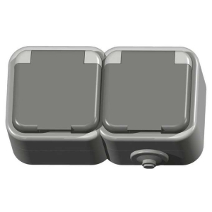 Gniazdo podwójne z uziemieniem DELFINA szare GNH-2DZ/30/W firmy OSPEL to bryzgoszczelne (IP44) gniazdo natynkowe.