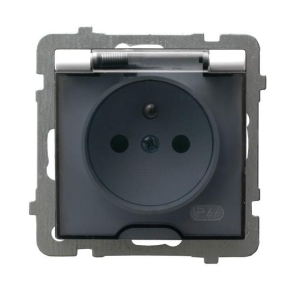 Gniazdo bryzgoszczelne, do stosowania w pomieszczeniach wilgotnych, z możliwością montażu w ramkach wielokrotnych. Występuje w kilku wersjach kolorystycznych. Wysokiej jakości tworzywo gwarantuje niezawodne użytkowanie.