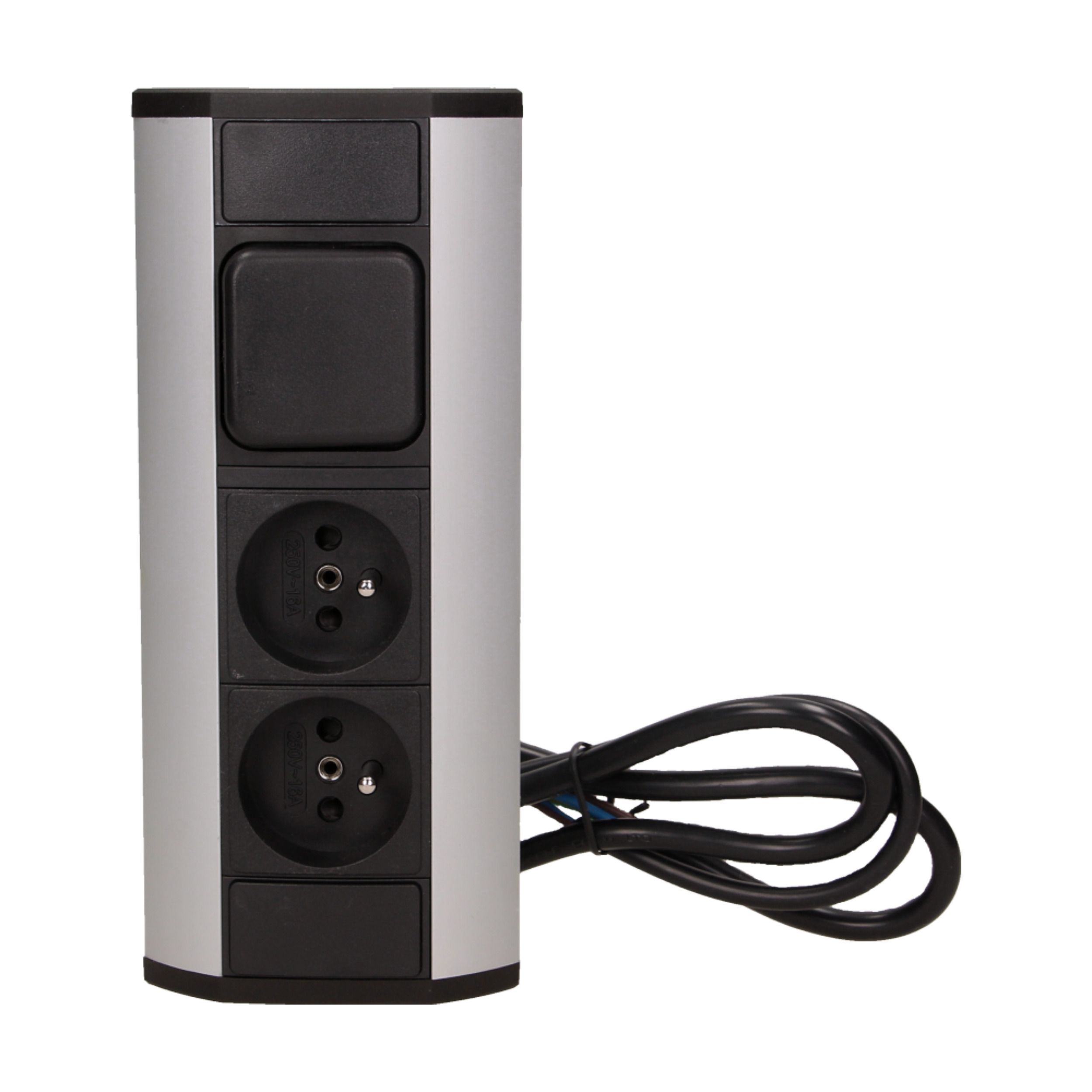 Eleganckie połączenie czarnego i srebrnego wykończenia doskonale komponuje się z nowoczesnymi aranżacjami wnętrz, a kompaktowa konstrukcja ułatwia montaż w meblach i blatach. To funkcjonalne rozwiązanie, które łączy wygodę użytkowania z estetyką.