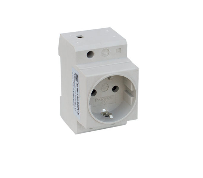 Gniazdo z uziemieniem przeznaczone do montażu na szynie TH35. Świetnie sprawdzi się jako gniazdo serwisowe w rozdzielni elektrycznej.