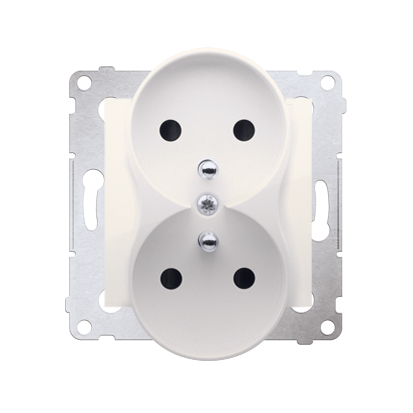 Gniazdo wtyczkowe podwójne z uziemieniem, z przesłonami - do Ramek PREMIUM (moduł), 16A, 250V, zaciski śrubowe, kremowy