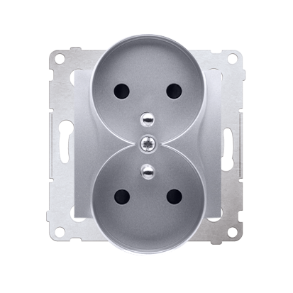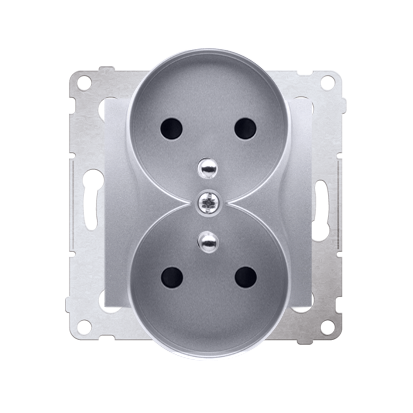 Gniazdo wtyczkowe podwójne z uziemieniem z przesłonami - do Ramek PREMIUM (moduł) 16A 250V, zaciski śrubowe, srebrny mat, metalizowany