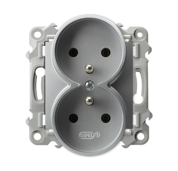Gniazdo podwójne z uziemieniem Srebrny Ospel Szafir - GP-2ZRZ/m/18 OSPEL