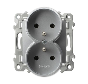 Standardowe gniazdo elektryczne podwójne z bolcem uziemiającym. Do kompletu wymagana ramka. Można stosować do systemów ramkowych wielokrotnych.