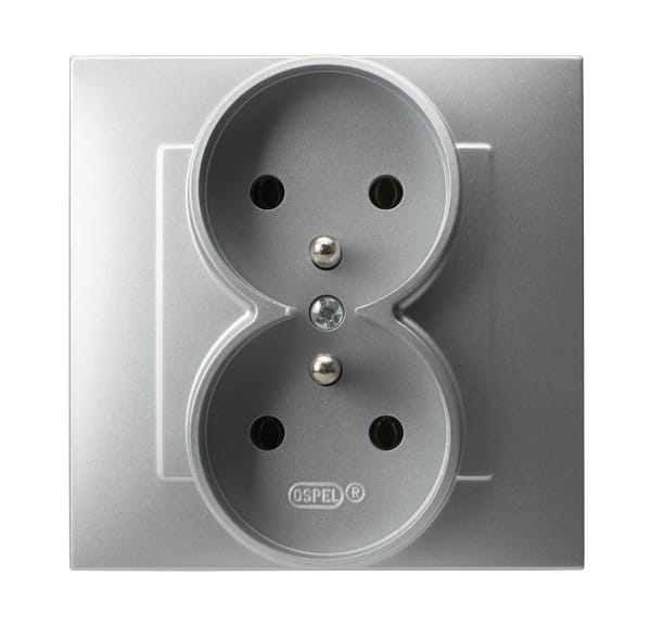Gniazdo podwójne z uziemieniem kompletne Srebrny Ospel Szafir - GP-2ZZ/18 OSPEL