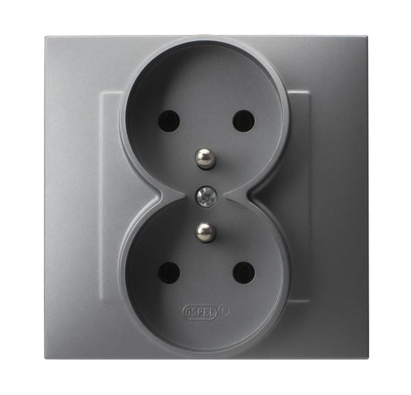 Gniazdo podwójne z uziemieniem kompletne Szary mat Ospel Szafir - GP-2ZZ/70 OSPEL