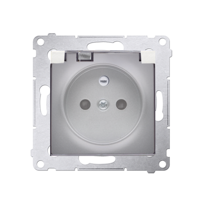 Gniazdo wtyczkowe pojedyncze do wersji IP44 - z uszczelką do ramek Premium - klapka w kolorze transparentnym do ramek Premium (moduł) 16A 250V, zaciski śrubowe, srebrny mat, metalizowany.