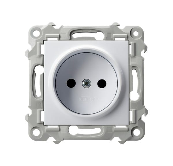Standardowe gniazdo elektryczne pojedyncze, bez uziemienia. Do kompletu wymagana ramka. Można stosować do systemów ramkowych wielokrotnych.