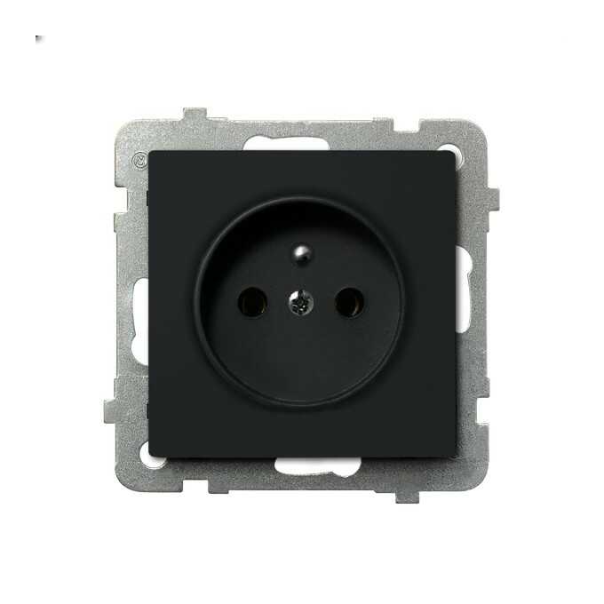 Gniazdo pojedyncze z uziemieniem SONATA czarny metalik GP-1RZ/M/33 firmy OSPEL to standardowe gniazdo elektryczne z bolcem uziemiającym.