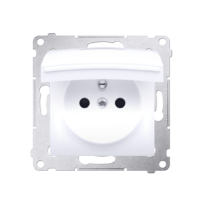 Gniazdo wtyczkowe pojedyncze do wersji IP44 - bez uszczelki - klapka w kolorze pokrywy do ramek Premium (moduł) 16A 250V, zaciski śrubowe, białe.