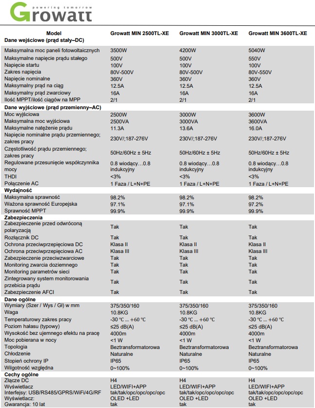 - Przystosowany do analizy konsumpcji własnej (wymagany Growatt Smart Meter)
