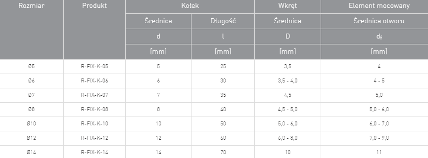 - Dwukierunkowy mechanizm rozporu koszulki gwarantuje pewne zamocowanie w pełnych podłożach.