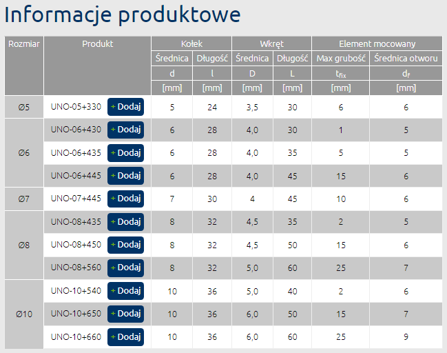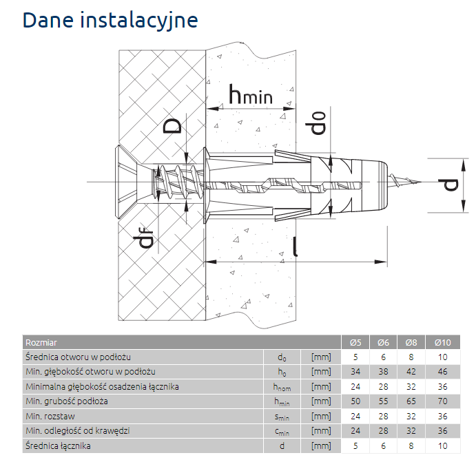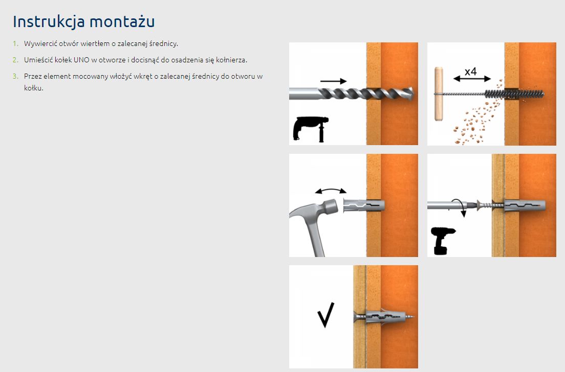 - 100% pewności kotwienia wynikające z unikalnego podziału kołka w górnej strefie jego konstrukcji.