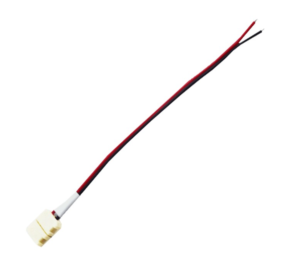 Konektor marki LED-POL, model ORO28009, przeznaczony do taśm LED o szerokości 10 mm. Umożliwia szybkie i wygodne połączenie dwóch odcinków taśmy LED bez konieczności lutowania, co znacznie ułatwia montaż i modyfikację instalacji oświetleniowej.