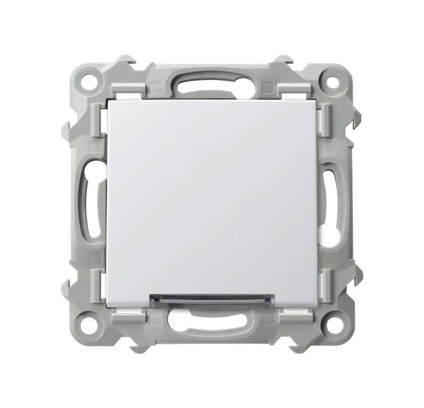 Standardowy wyłącznik pojedynczy wyposażony w jeden klawisz umożliwiający załączanie i wyłączanie w obrębie jednego obwodu. Stosowany w pomieszczeniach jako przełącznik oświetlenia. Do kompletu wymagana ramka. Można stosować do systemów ramkowych wielokrotnych.