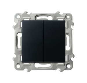 Łącznik wyposażony w dwa klawisze, umożliwiający łączenie dwóch niezależnych obwodów oświetleniowych ze wspólnego (jedno) zasilania. Używany najczęściej do załączania żyrandoli (podzielonych na dwie strefy). Do kompletu wymagana ramka. Można stosować do systemów ramkowych wielokrotnych.