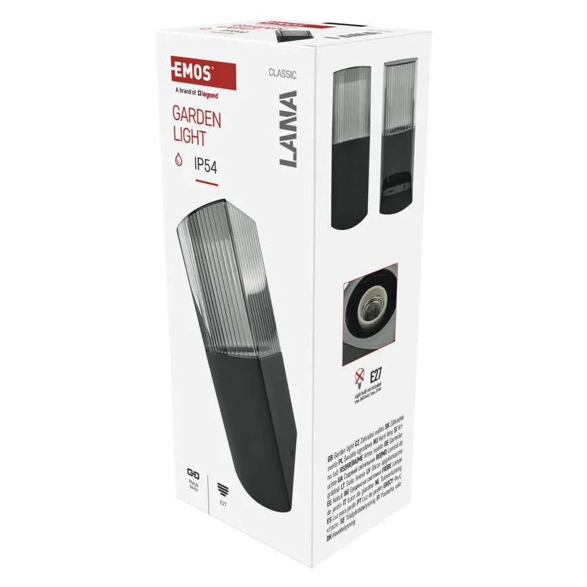 Lampa naścienna EMOS Garden LANA 28,5 cm – E27, max 25 W, IP54. Stylowa lampa ogrodowa w kolorze antracytowym, odporna na kurz i zachlapania (IP54). Montowana naściennie, przeznaczona do żarówki E27 (max 25 W, brak w zestawie). Idealna do oświetlenia elewacji, tarasu lub ogrodu.