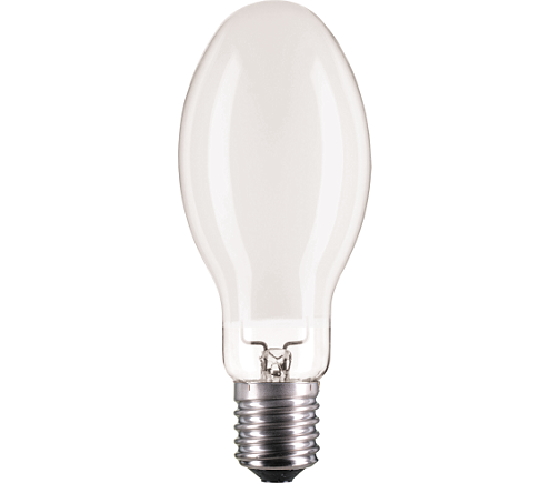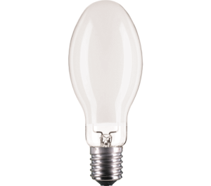Wysokoprężna bezrtęciowa lampa sodowa z opalizowaną owalną zewnętrzną bańką o mocnym strumieniu świetlnym oraz dużej trwałości użytkowej i niezawodności.