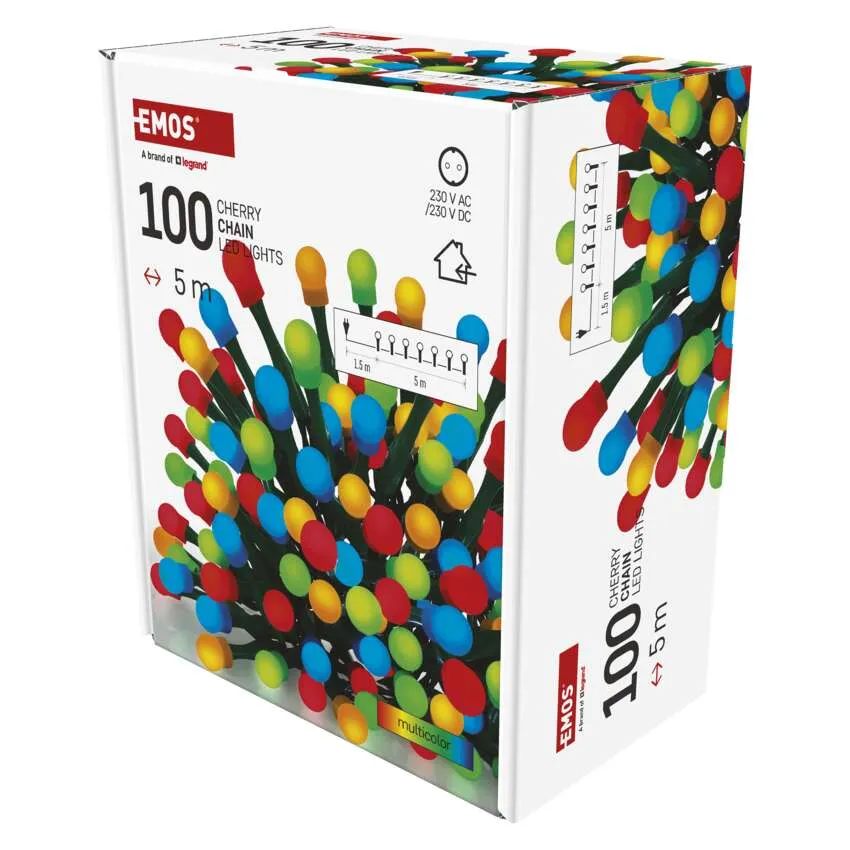 Lampki choinkowe 100 LED cherry 5m multikolor, zielony przewód, IP20 D5GM02 EMOS