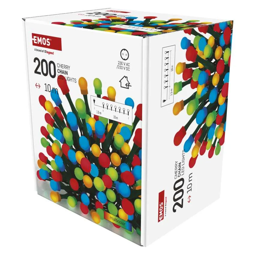 Lampki choinkowe 200 LED cherry 10m multikolor, zielony przewód, IP20 D5GM03 EMOS