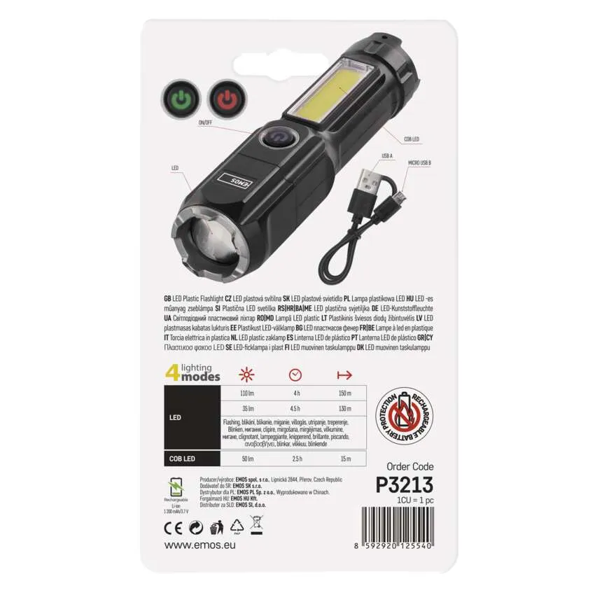Latarka LED plastikowa 110 lm, z zoomem, ładowalna, 1 200 mAh P3213 EMOS