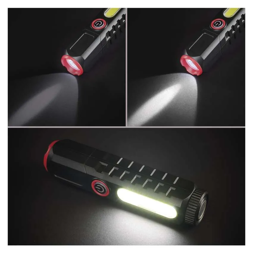 Ładowalna, 4 tryby świecenia (LED i COB), zasięg do 130 m, zasilanie akumulatorem Li‑Ion USB‑C. Kompaktowa i lekka, idealna do domu, warsztatu i pleneru. Opakowanie zbiorcze: 10 sztuk w display boxie.