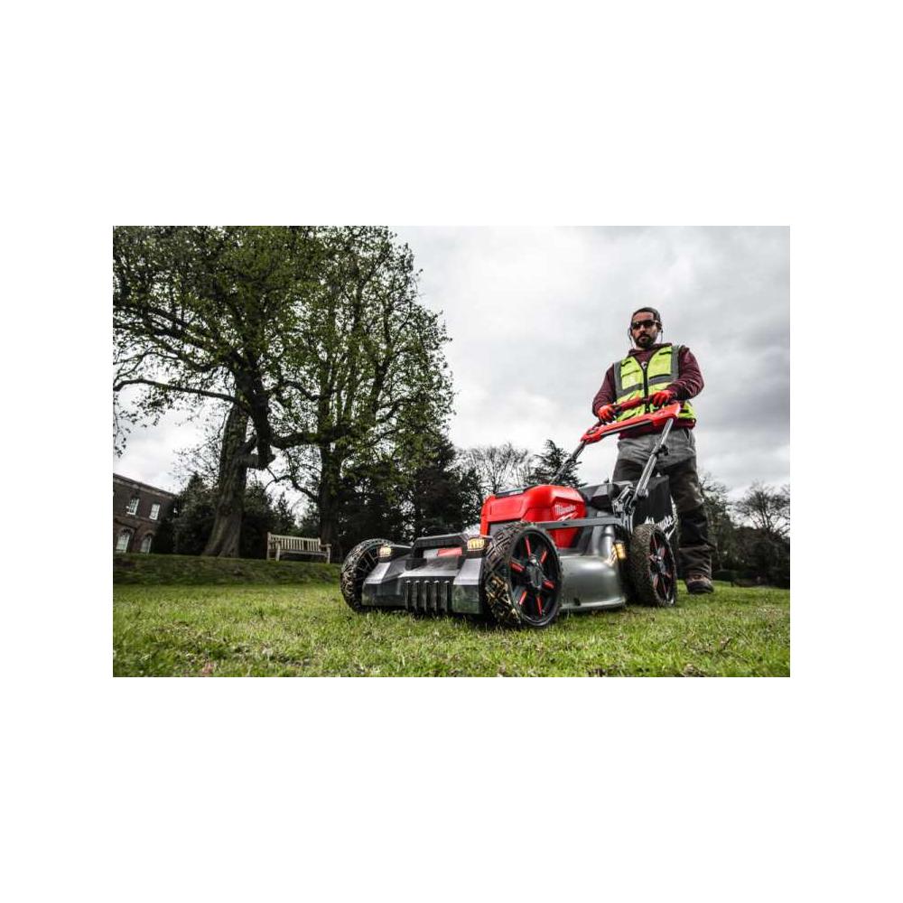 Napęd z pięcioma biegami pozwala dostosować tempo koszenia do własnych potrzeb, osiągając maksymalnie 6,4 km/h. Składany pałąk sterujący ułatwia transport i przechowywanie w pozycji pionowej, co oszczędza miejsce. Kosiarka współpracuje z całym systemem bateryjnym M18™, a w połączeniu z podwójną szybką ładowarką Milwaukee gwarantuje krótszy czas ładowania i gotowość do pracy bez przestojów.