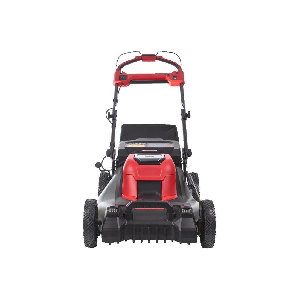 System 3 w 1 daje możliwość wyboru pomiędzy mulczowaniem, zbieraniem trawy do 70-litrowego kosza lub wyrzutem bocznym. Automatyczna regulacja prędkości noża dostosowuje moc do warunków, co zwiększa efektywność i wydłuża czas pracy akumulatora. Reflektory LED zapewniają widoczność w zakresie 180°, a centralna regulacja wysokości koszenia (2,5–10 cm) umożliwia szybkie dopasowanie parametrów do rodzaju trawnika.