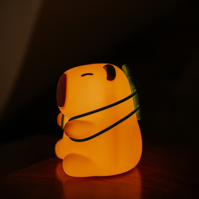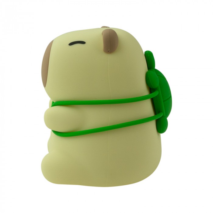 Urocza lampka nocna w kształcie kapibary, z funkcją RGB i ciepłym światłem (3000 K). Idealna do pokoju dziecięcego, sypialni lub jako dekoracja. Wykonana z bezpiecznego silikonu i ABS, zasilana przez USB‑C z wbudowanym akumulatorem, zapewnia długie godziny świecenia.
