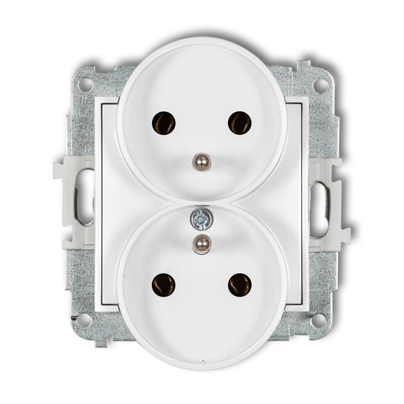 Mechanizm gniazda podwójnego do ramki z uziemieniem 2x 2P+Z biały MINI KARLIK