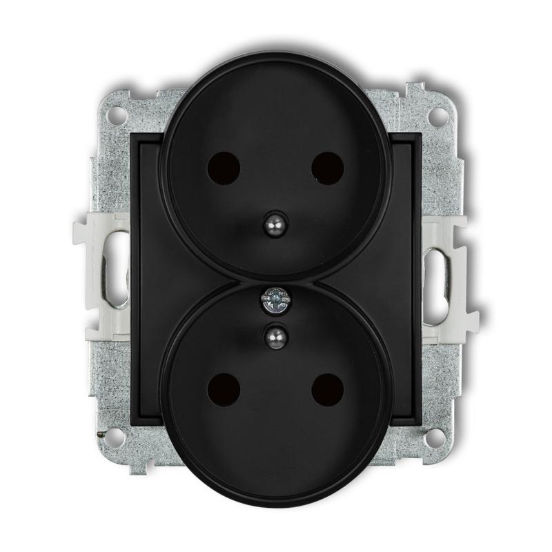 Mechanizm gniazda podwójnego do ramki z uziemieniem 2x 2P+Z czarny mat MINI KARLIK