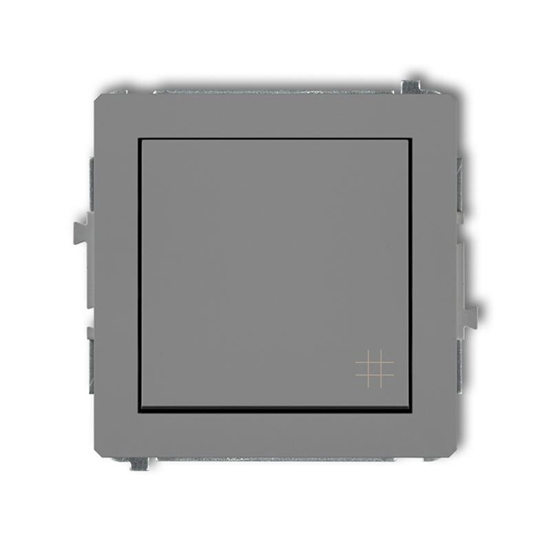 Mechanizm łącznika krzyżowego 27DWP-6 DECO KARLIK w kolorze szary mat, umożliwiający sterowanie jednym obwodem oświetleniowym z trzech lub więcej miejsc. Trwałe tworzywo i elegancki design serii DECO.