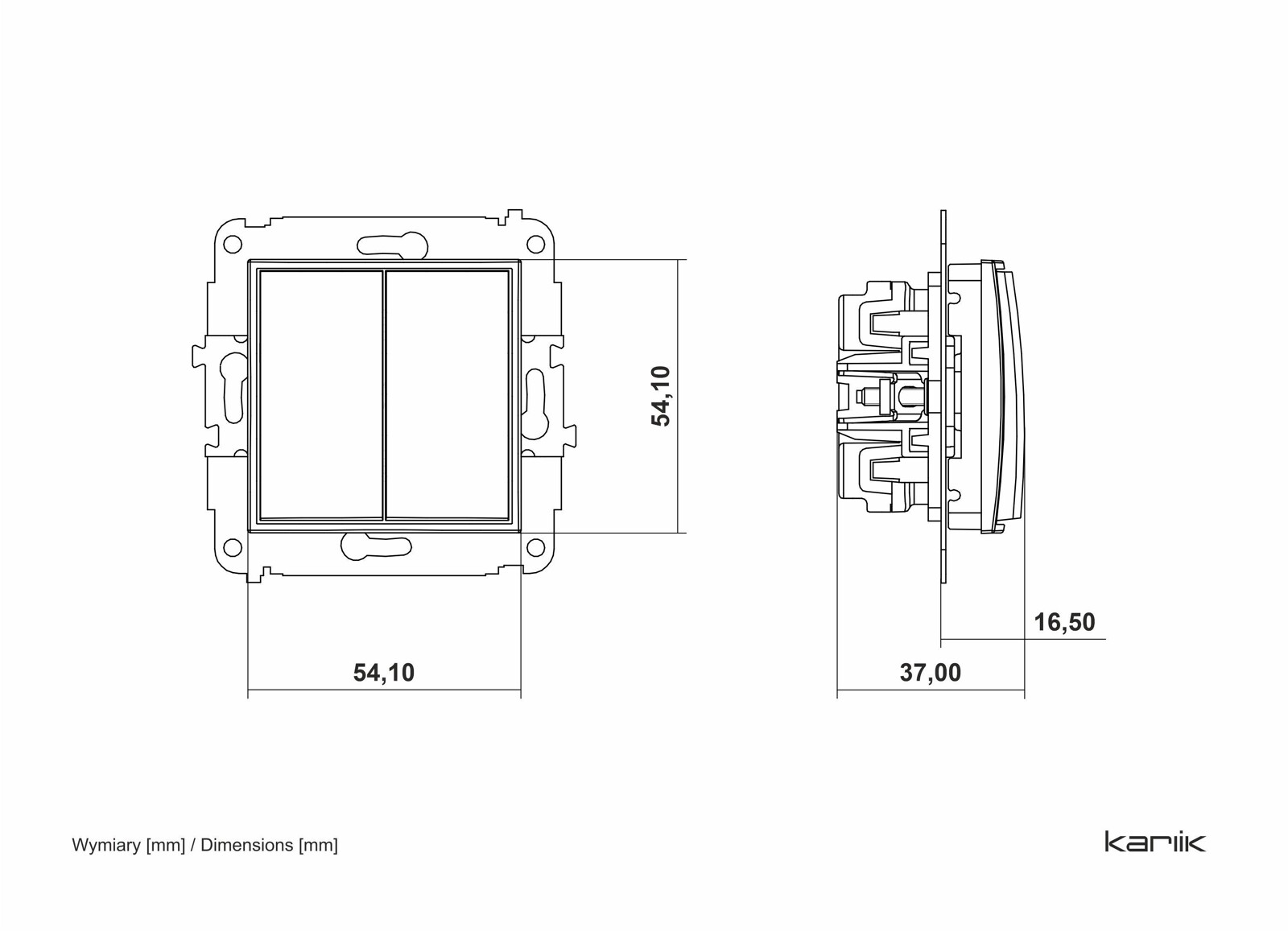 Wysokiej jakości element osprzętu elektrycznego, umożliwiający niezależne sterowanie dwoma obwodami oświetleniowymi z jednego miejsca. Produkt z serii ICON marki KARLIK łączy solidną konstrukcję z nowoczesnym i eleganckim designem, idealnym do wnętrz mieszkalnych i biurowych.