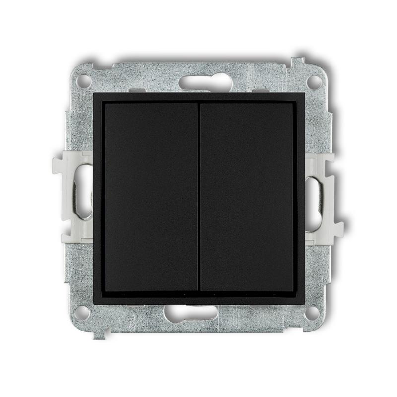 Mechanizm łącznika świecznikowego KARLIK 12MWP-2 MINI w kolorze czarny mat. Przeznaczony do sterowania dwoma obwodami oświetleniowymi. Wysoka jakość wykonania, nowoczesny design, łatwy montaż w standardowej puszce Ø60. Idealny do nowoczesnych wnętrz.
