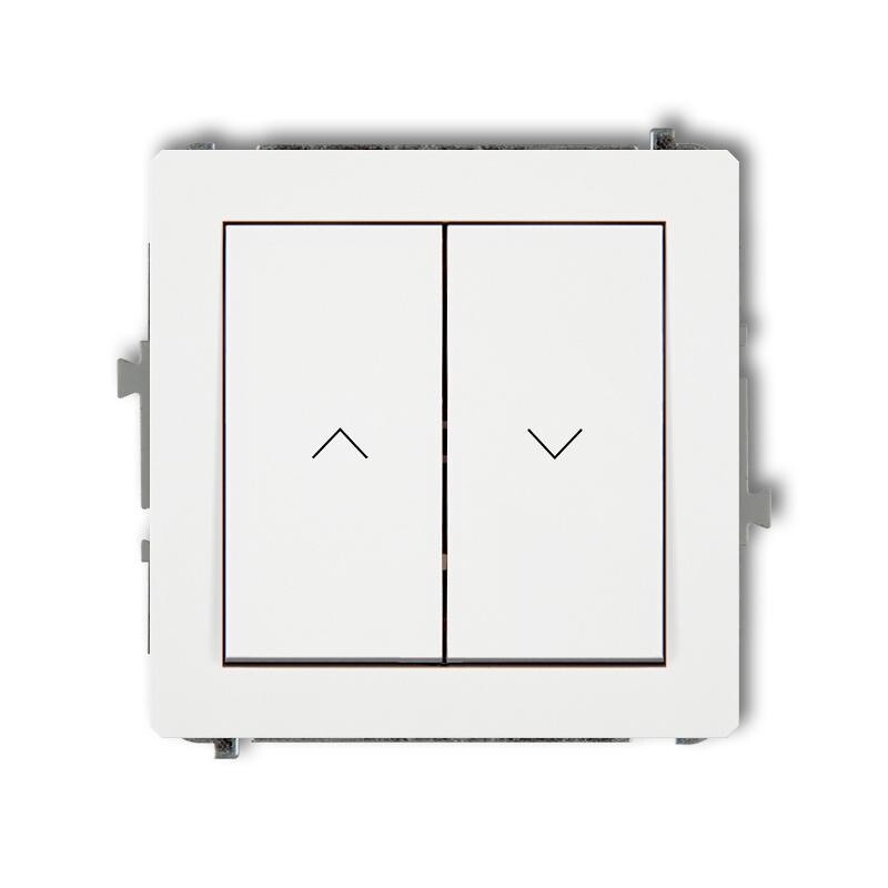 Mechanizm łącznika zwiernego żaluzjowego DWP-8 DECO KARLIK w kolorze białym. Przeznaczony do sterowania żaluzjami, roletami i markizami, łatwy montaż podtynkowy, kompatybilny z ramkami serii DECO.