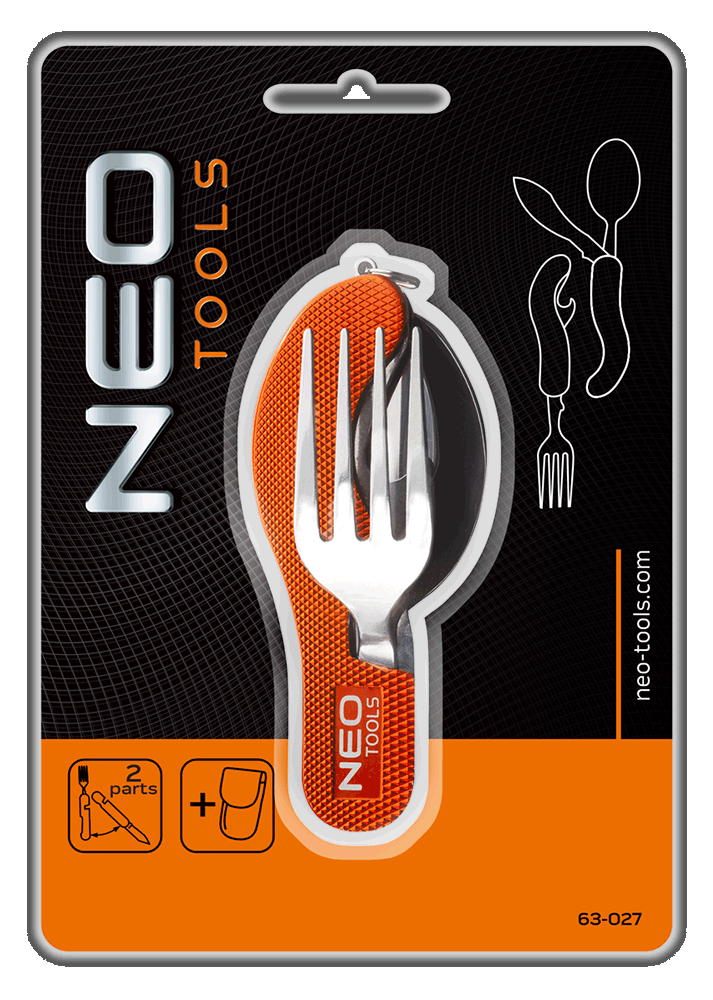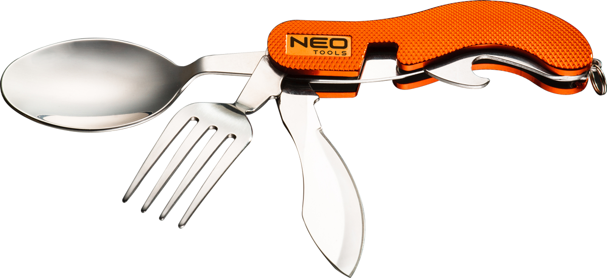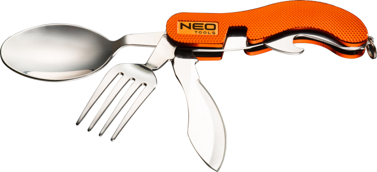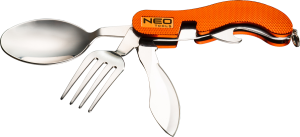 Funkcje: nóż, łyżka, widelec, otwieracz do butelek, otwieracz do puszek.