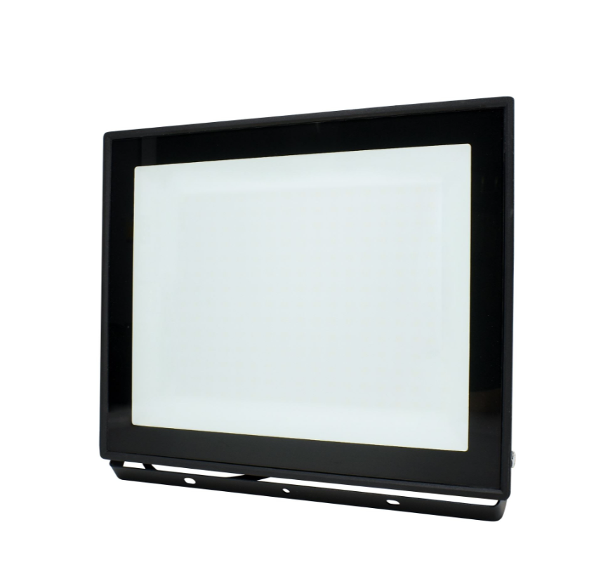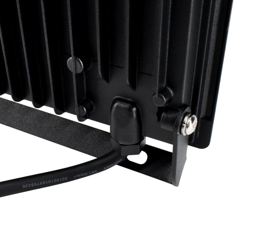 Czarny, odporny na warunki atmosferyczne (IP65), idealny do hal, magazynów, placów budowy i oświetlenia zewnętrznego dużych powierzchni.