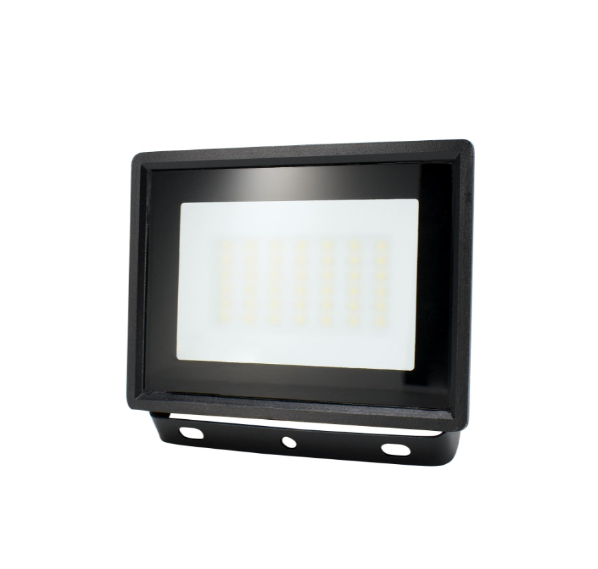 Naświetlacz zewnętrzny LED 30W o neutralnej bieli 4000K i strumieniu 2520 lm. Obudowa IP65 odporna na kurz i wodę, idealny do ogrodów, podjazdów, wejść i terenów przemysłowych. Model C64-LFK2-030BL-4K, kolor czarny.