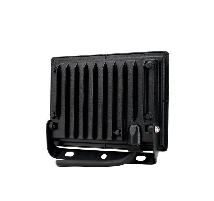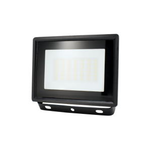 Naświetlacz zewnętrzny LED 30W o chłodnej barwie światła 6500K i strumieniu 2550 lm. Obudowa IP65 odporna na kurz i wodę, idealny do ogrodów, podjazdów, wejść, parkingów i terenów przemysłowych. Model C64-LFK2-030BL-6K, kolor czarny.