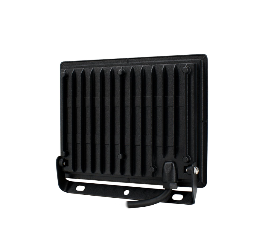 Naświetlacz zewnętrzny LED 50W o neutralnej bieli 4000K i strumieniu 4280 lm. Obudowa IP65 odporna na kurz i wodę, idealny do ogrodów, podjazdów, parkingów i terenów przemysłowych. Model C64-LFK2-050BL-4K, kolor czarny.