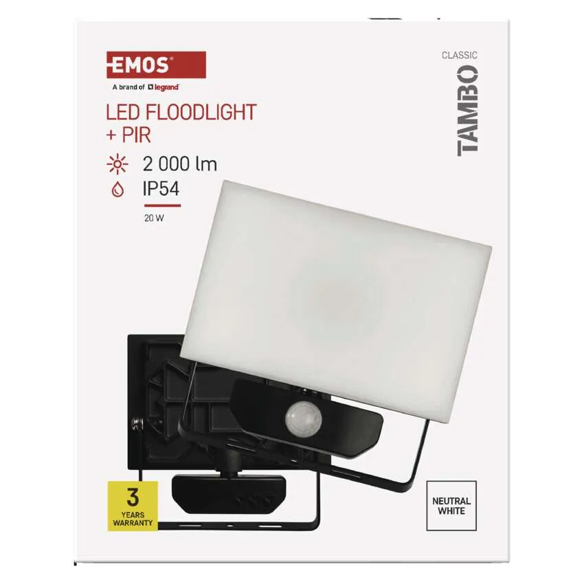 Naświetlacz LED TAMBO z czujnikiem PIR 20W 2000 lm czarny EMOS