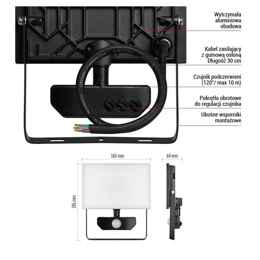 Naświetlacz LED TAMBO z czujnikiem PIR 30W 3000 lm czarny EMOS