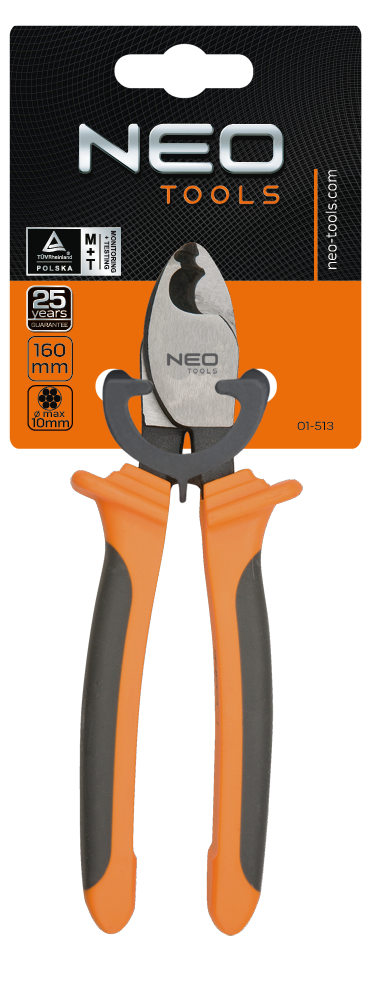 - Obcinak do kabli miedzianych i aluminiowych 01-515 NEO wykonany został zgodnie z normą DIN 5749.