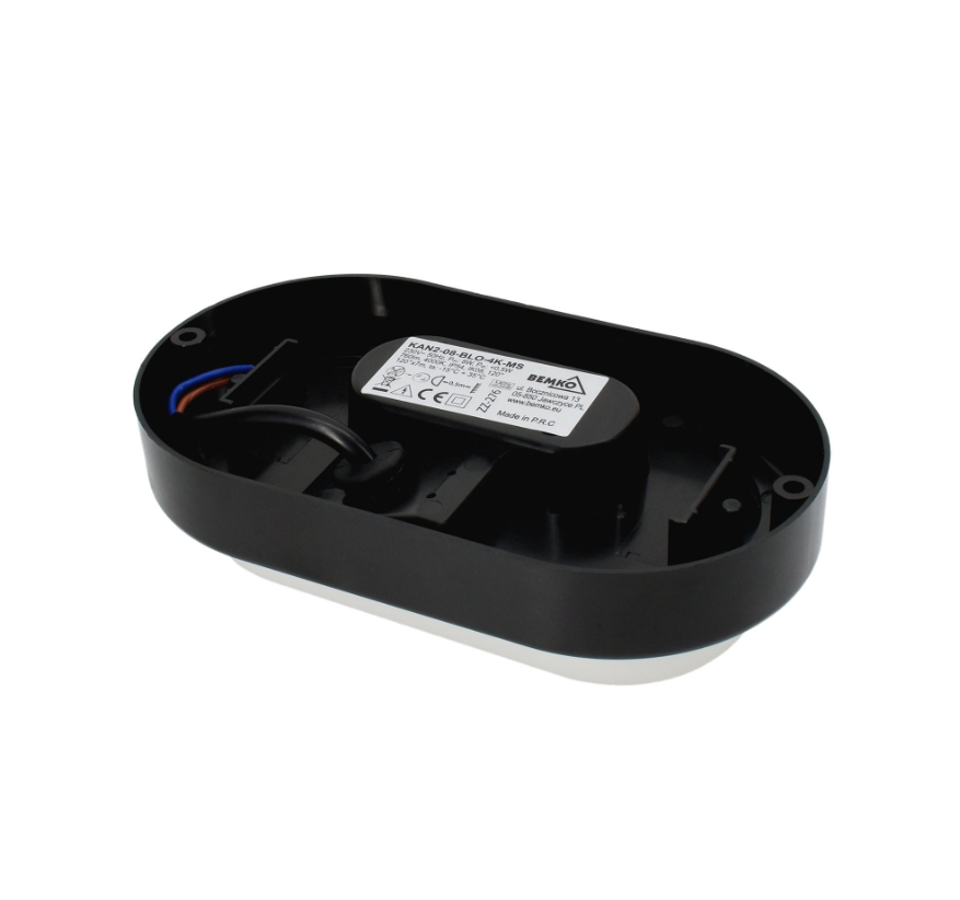 Oprawa LED KANLO owalna 8W 4000K 760LM IP54 czarna C45-KAN2-08-BLO-4K BEMKO