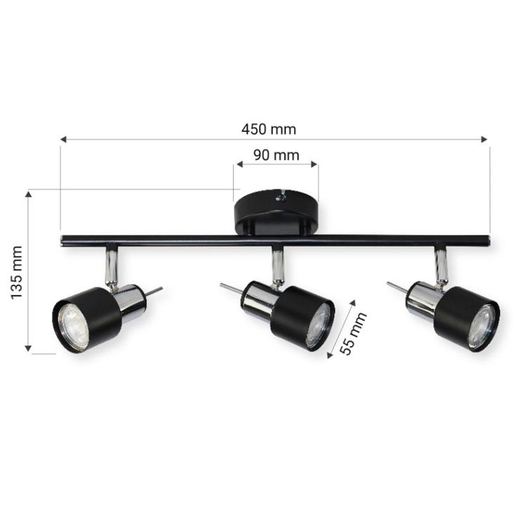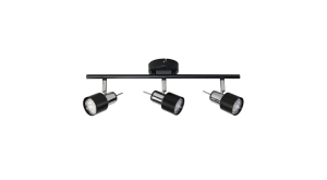 Lampa została wyposażona w trzy gniazda GU10, umożliwiające zastosowanie energooszczędnych żarówek LED o maksymalnej mocy 10 W każda. Regulowane reflektory pozwalają skierować światło dokładnie tam, gdzie jest to potrzebne – co sprawia, że oprawa świetnie sprawdza się jako główne oświetlenie pokoju, kuchni, korytarza czy strefy roboczej.